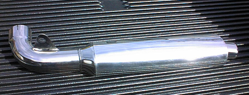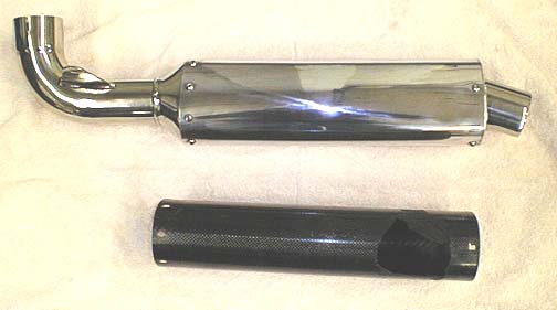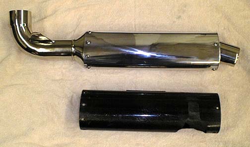 This motorcycle muffler originally had a carbon fiber shell that broke