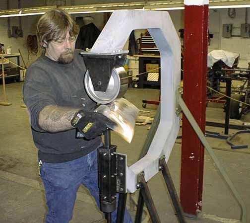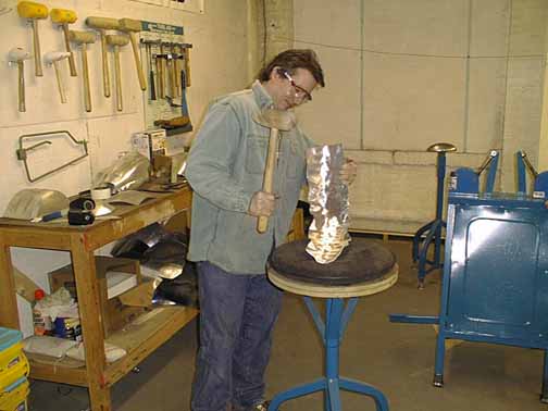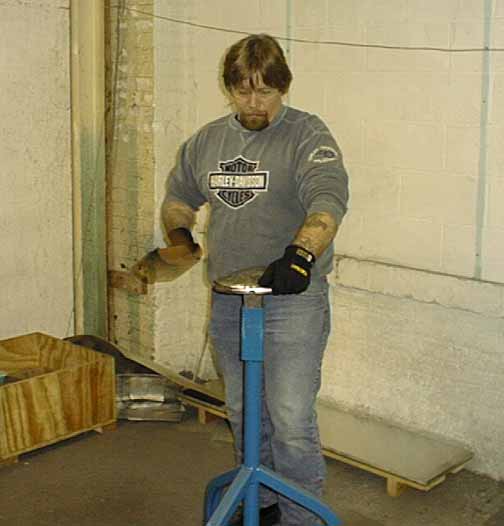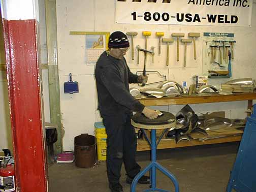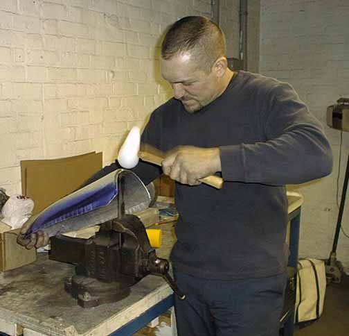 Hammer Forming nose of Hood Scoop on T-Dolly - Dan