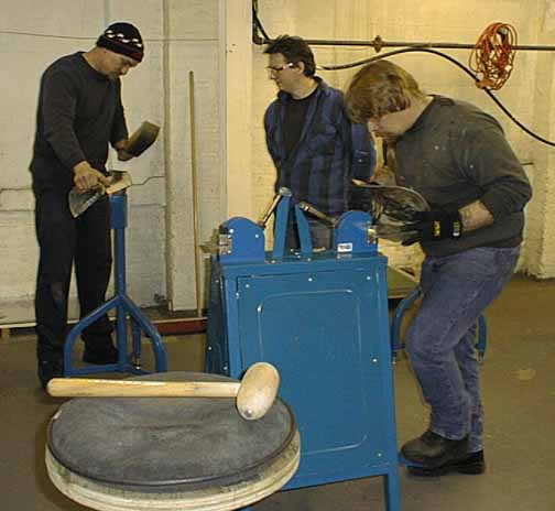 Slapping Hood Scoop on Forming Head - Dan, Mike, Doug - Shrinking Hood